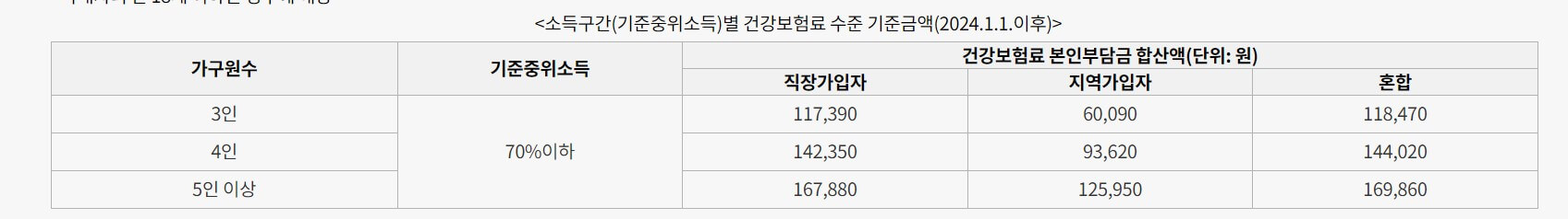 - 기준 중위소득 70% 이하인 다자녀 가구(2명 이상으로 막내 자녀가 만 18세 이하)